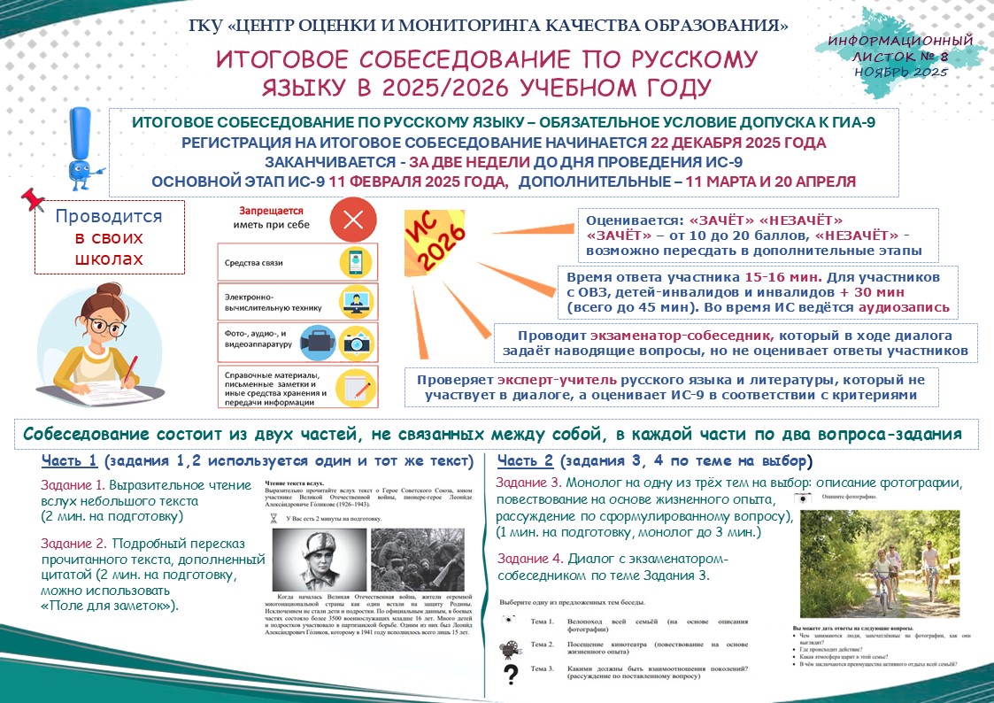 Памятка для участников итогового собеседования по русскому языку и их родителей (законных представителей)